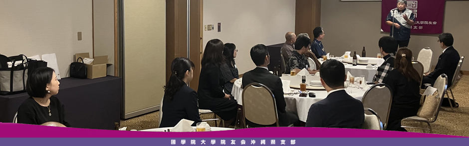 國學院大學院友会沖縄県支部は、國學院大學のOB会である國學院大學院友会の沖縄県支部です。支部総会・懇親会などを行います。詳しくは、一般財団法人國學院大學院友会ホームぺージ「法人概要」をご覧ください。https://www.kokugakuin.or.jp/profile/